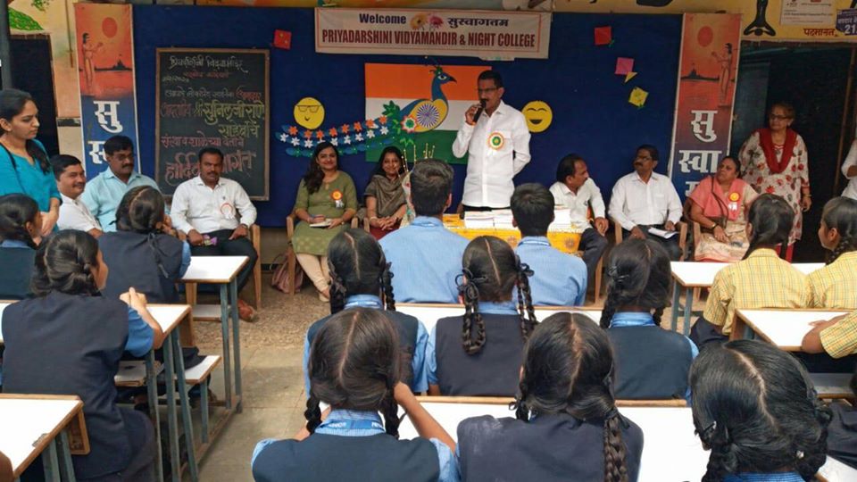 As the board exams of SSC students are approaching, Shri. Sunil Rane visited Priyadarshini Vidyamandir & Night College, at Charkop Sector 7, Kandivali West, to distribute "21 Set" Books to the SSC Students. Interacted with the students and wished them luck for their exams.