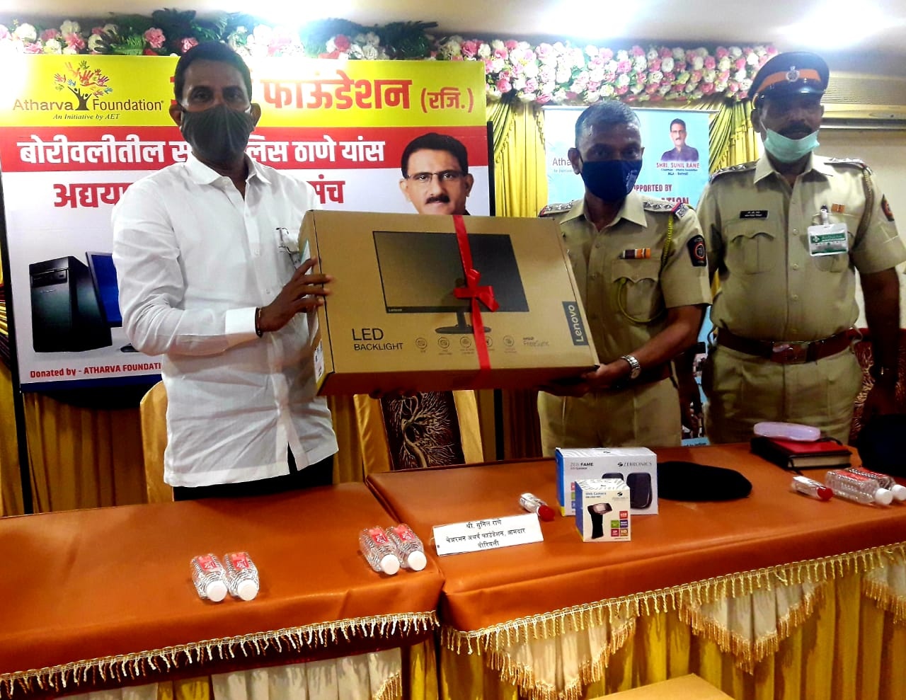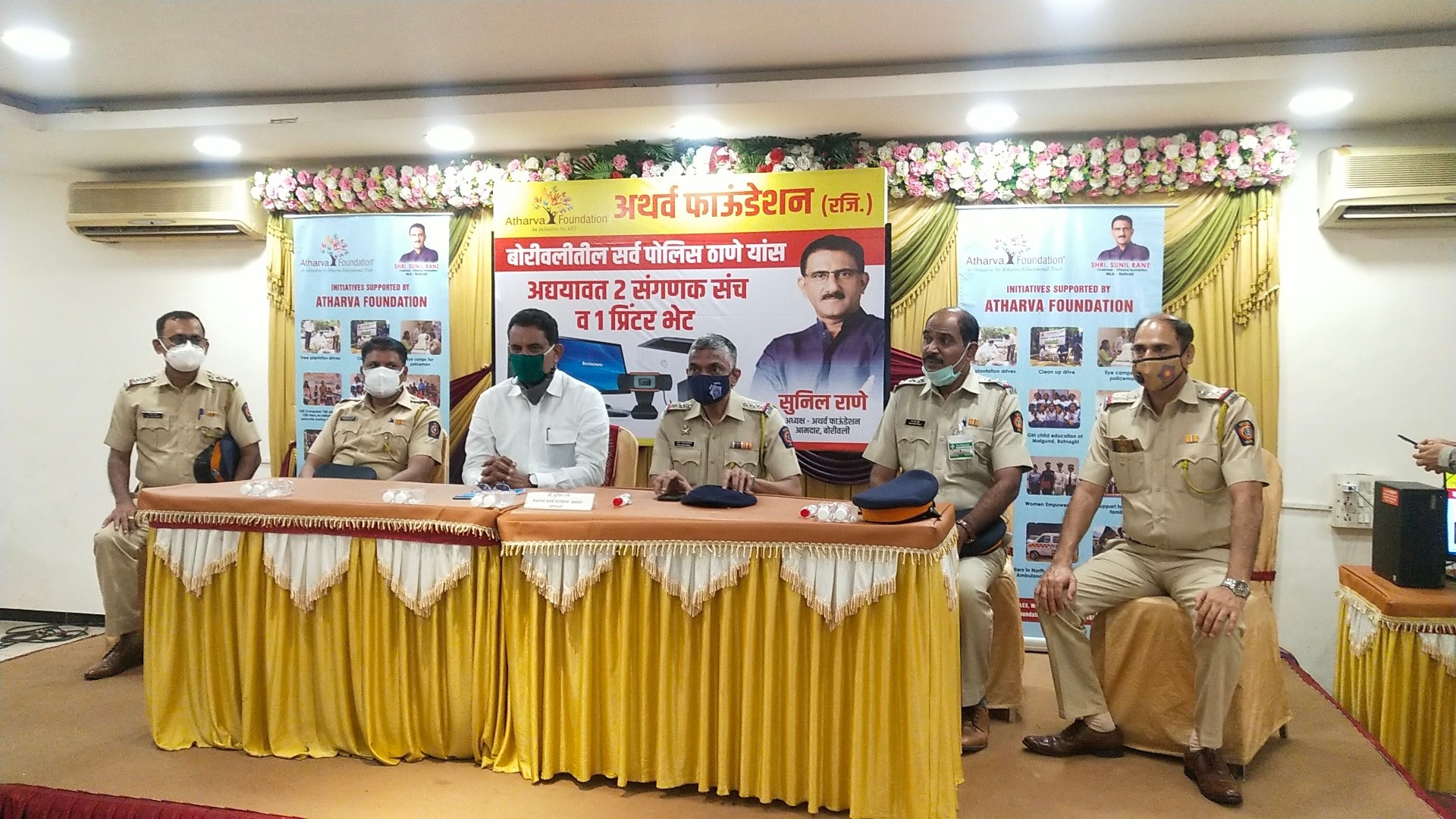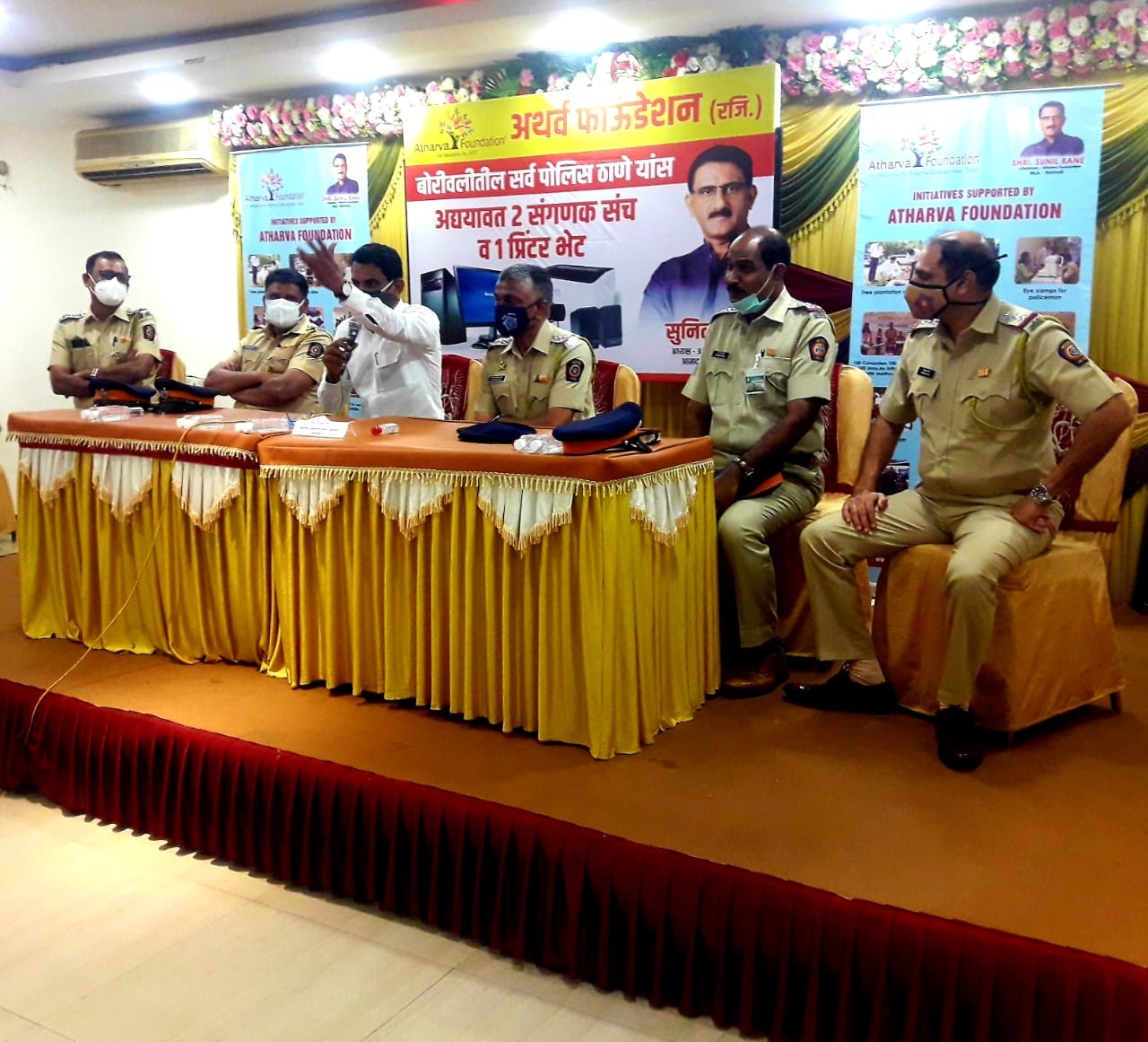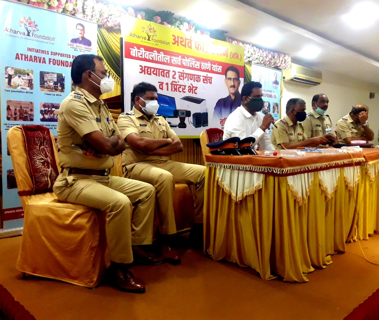 Atharva Foundation donated 2 Computers , 1 Printer, 1 Web-Cam & 1 Speaker sets to Police Stations of MHB Colony, Kasturba Marg, Kandivali, Charkop and Borivali (W) within Borivali Constitution. A program was organised to announce the distribution done at Mega Party Hall, Shimpoli Road. All Sr. Police Officers and Representatives from the concerned Police Stations were also present!