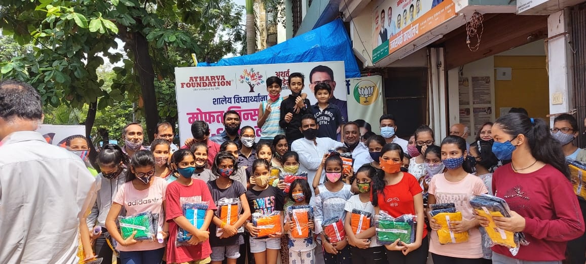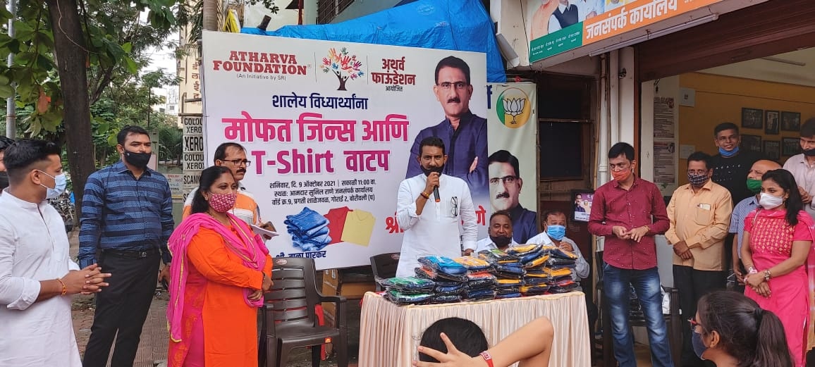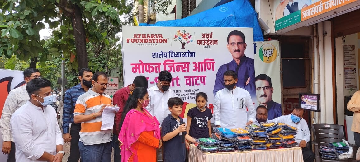 "Atharva Foundation" organised a 'Free Jeans and Tshirt Distribution' program for the school going young kids' at Public Relations Office, Ward No.9, Pragati Naka, Gorai-02, Borivali(W)