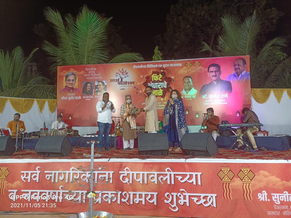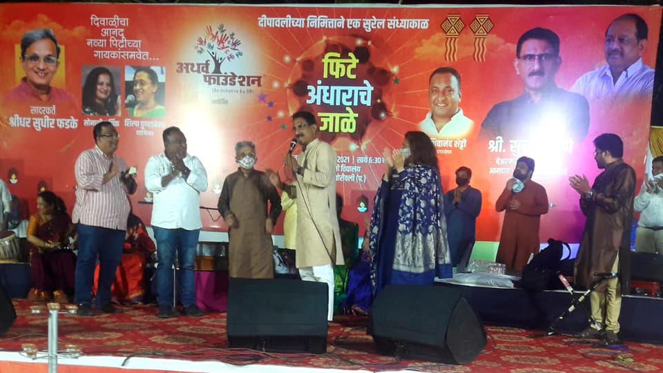 Attended a melodious evening "Phite Andharache Jaale" organised on the occasion of Diwali by "Atharva Foundation" a performance by Singer Mr.Shridhar Phadke at Pragati School, Pragati Naka, RAC 48, Gorai Sector-02, Borivali(W).