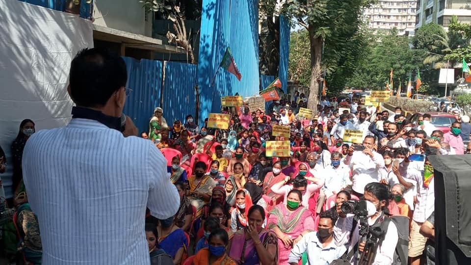 Attended a protest organized by Bhartiya Janata Party, Borivali Constituency against the decision to send slum dwellers from Mahatma Phule Nagar, Indira Nagar, and Bhim Nagar to Chembur.