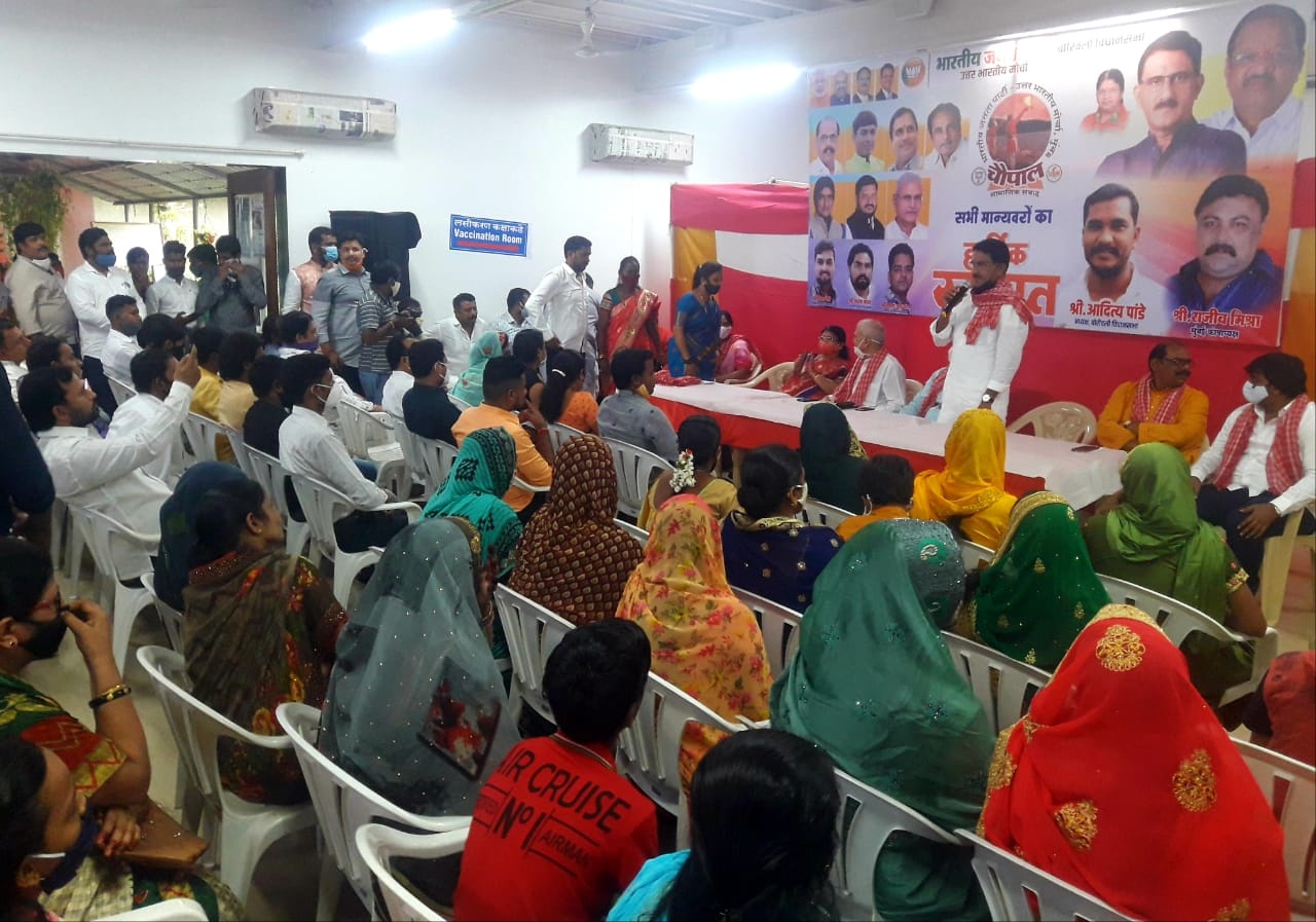 Attended the ??haupal Samajik Samvad??program organised by Bharatiya Janata Party - Uttar Bharatiya Morcha Mumbai. Corporator Mrs. Anjali Khedkar, Former Corporator Mr. Shiva Shetty , BJP Padadhikari and Karyakartas attended the program .