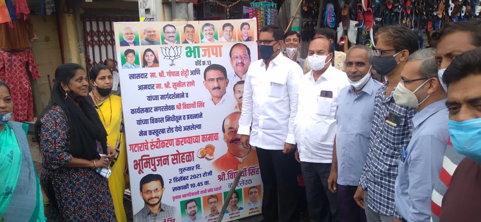 Attended the Bhumi Pujan ceremony of widening of the gutter at Borivali Kasturba Road, Borivali East. Corporator Mr. Vidyarthi Singh was present on this occasion.