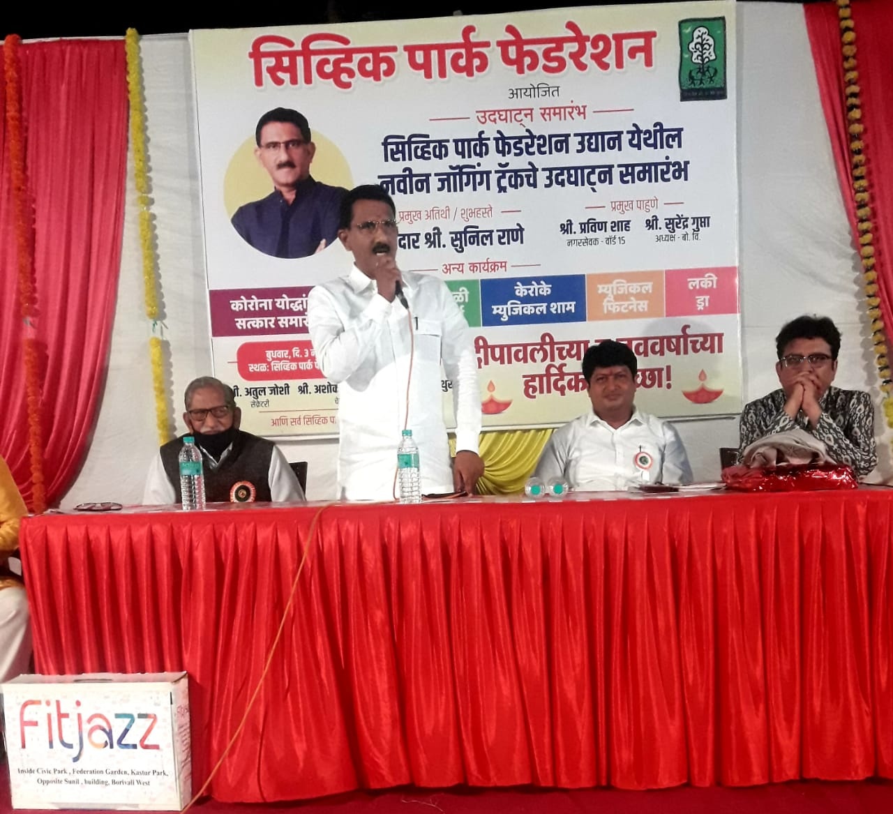 Attended the inauguration ceremony of the Jogging Track at Civic Park Federation, Kastur Park, Borivali(W), Dr. Amit Aaroskar who served Sr. Citizens of the nearby areas out of philanthropic act during the Covid Pandemic was honoured for his humanitarian