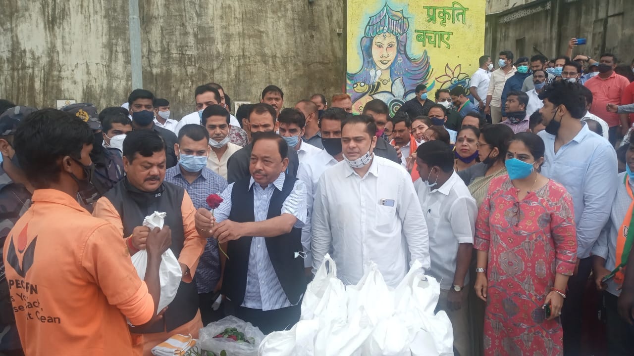 Began the second day of Hon'ble Union Minister of Micro, Small and Medium Enterprises Shri. Narayanrao Rane's "Jana Ashirwad" Yatra by joining him for a Press Conference. Hon.Minister felicitated the employees who have been majorly contributing to keep Mumbai clean and beautiful. Opposition leader of legislative council of Maharashtra Mr. Pravin Darekar, Senior BJP leaders, MLAs, Corporators, Padadhikari and Karyakartas were also present !