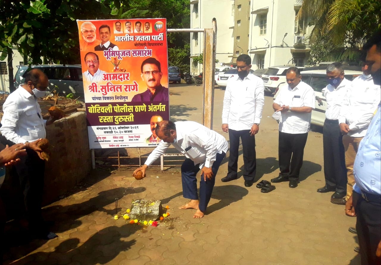Bhumi Pujan ceremony of road repair work under Borivali Police Station at Ward No. 15, Borivali (W) was held today from MLA Development Fund. Senior Corporator Mr. Praveen Shah, North Mumbai District BJP President Mr. Ganesh Khankar, BJP Padadhikari and