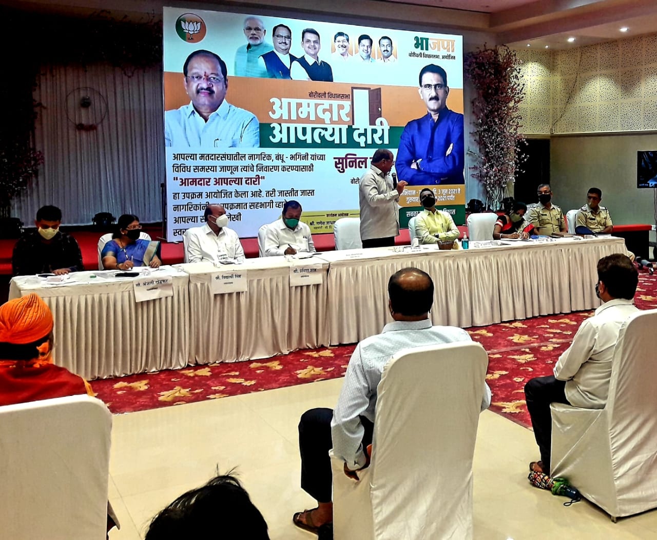 BJP Borivali Constituency Organised Initiative "MLA at your Doorstep" - Day 13 held at Hariyana Bhawan, Sector -6, Charkop, Ward No.17. MP North Mumbai Mr. Gopal Shetty, Corporators Mr. Vidhyarthi Singh, Mr. Pravin Shah, Mrs. Anjali Khedkar, Mrs. Bina D