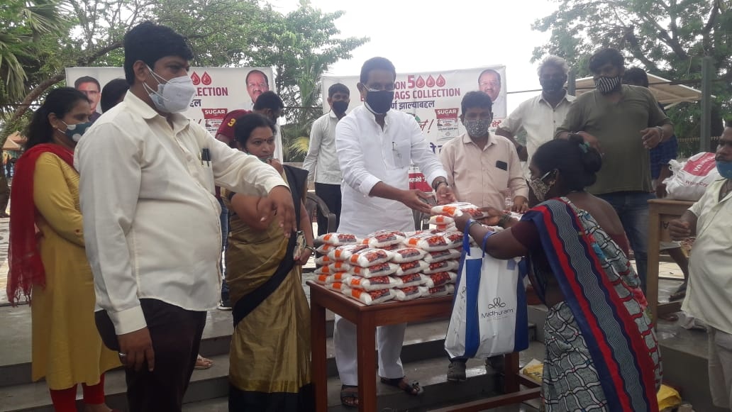 Distribution of 5000 kg sugar is continued today at New M.H.B. Colony, Ward no 16, Swami Vivekananda Library for the local residents as a goodwill gesture on the successful completion of the vision of collecting 5000 blood bags initiated by MP Gopal Shett