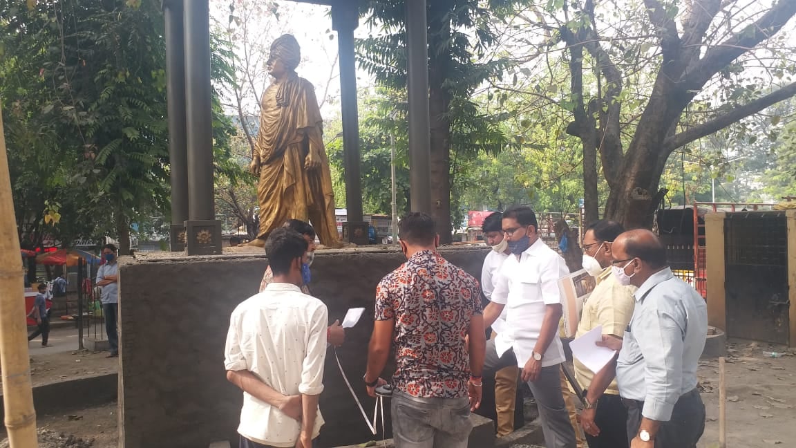 Inspected the ongoing beautification work being done of Swami Vivekananda Statue, SV Road, Borivali (W) and also visited the newly constructed Swami Vivekananda Library and Arts Center along with office bearers and karyakartas to overlook the final work being done.