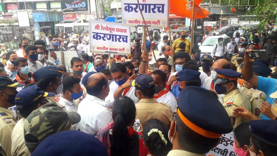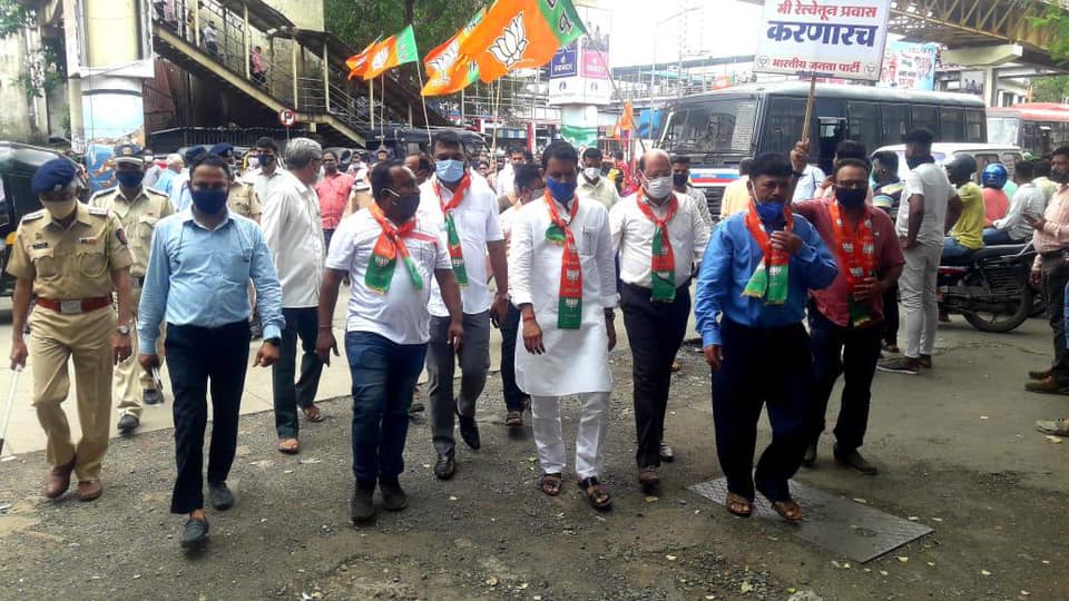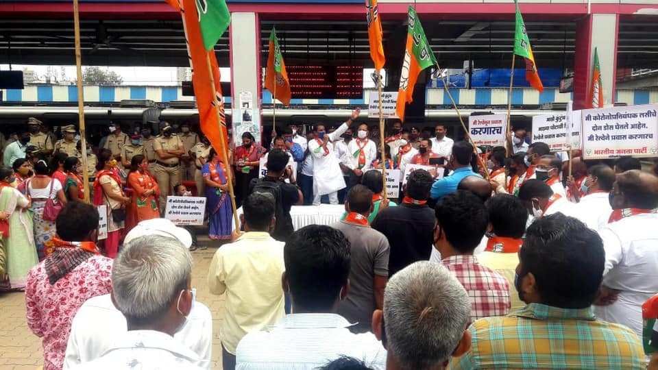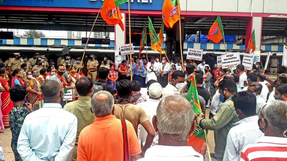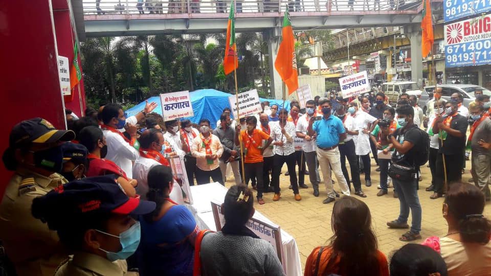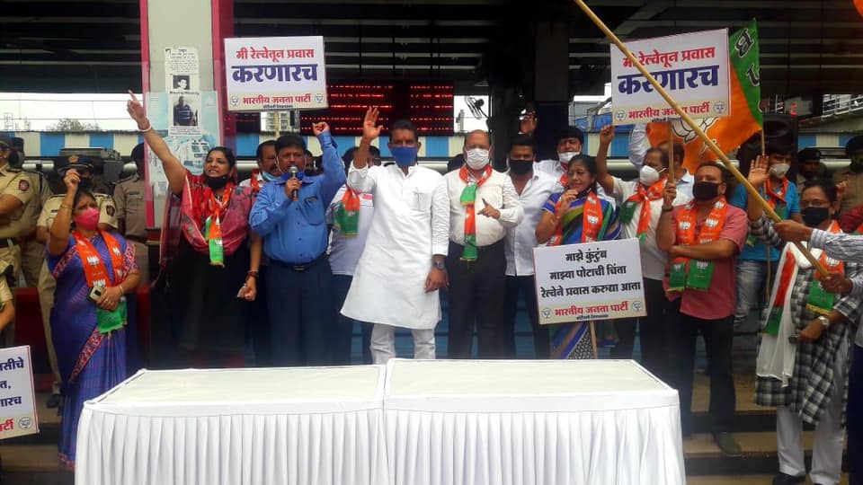 Local Trains being the lifeline of Mumbaikars, to ease the commuting problems of daily commuters who are currently being barred from travelling in local trains; BJP Borivali Constituency organised a mass movement to demand permit for travelling in local trains to all the citizens who have taken complete two dosage of Covid-19 Vaccination.