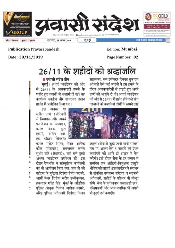 News coverage of the 26/11 program - A tribute to the martyrs of #MumbaiTerrorAttacks which was held at Veer Savarkar Udyaan, Borivali.