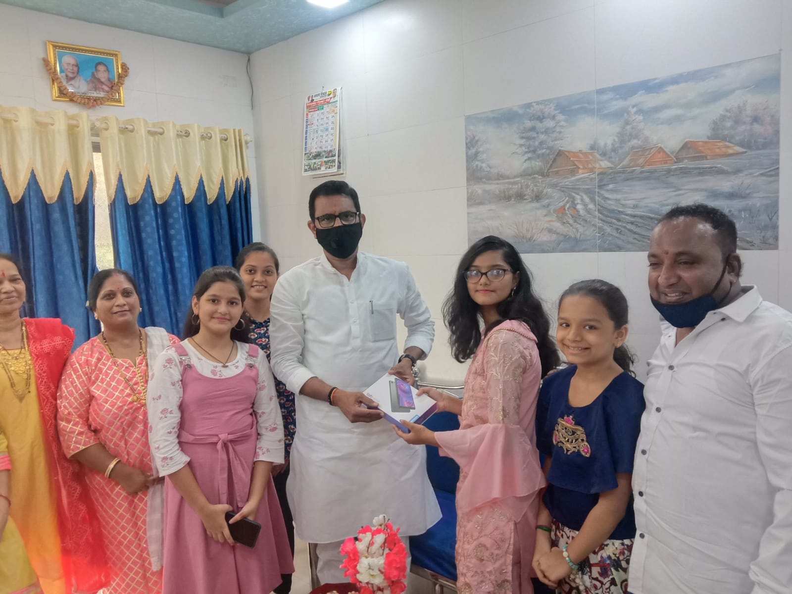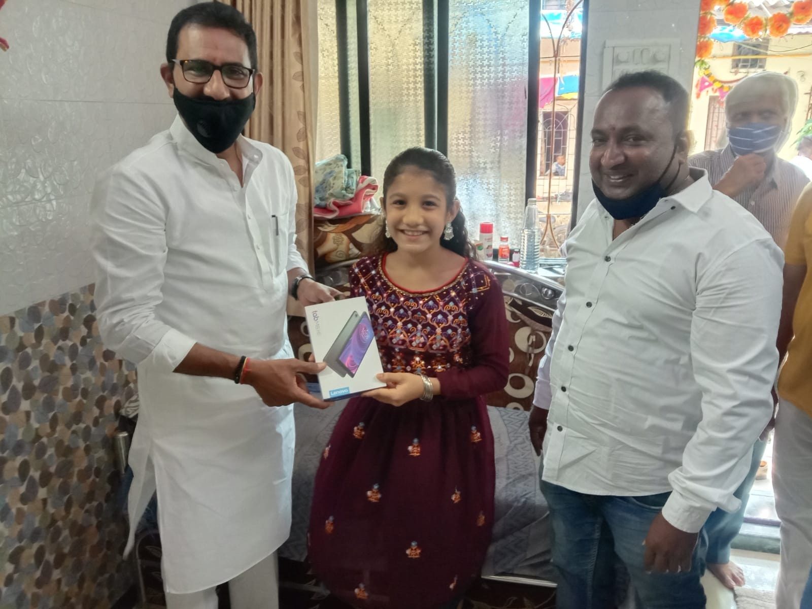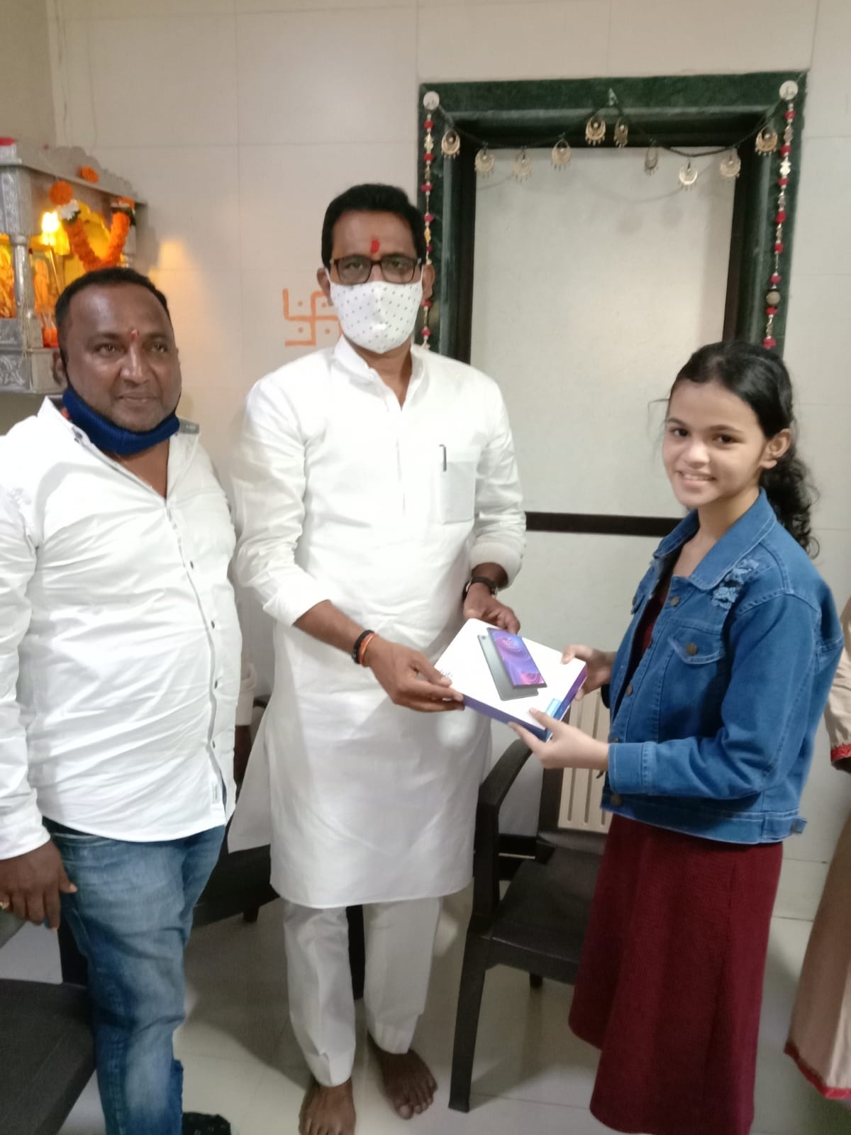 On the auspicious occasion of Dussehra visited young bright school going girls Ms.Vanshika Parmar, Ms.Srushthi Gupta & Ms. Aditi Prasanna Shirke from Borivali and gifted them an Electronic Tab to support their online education under the initiative "Beti Bachao Beti Padhao" started by our Hon. Prime Minster Shri. Narendra Modiji initiated to encourage and promote Girl's Child Education in India.!!
