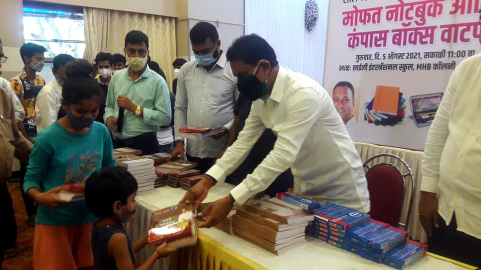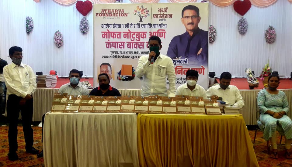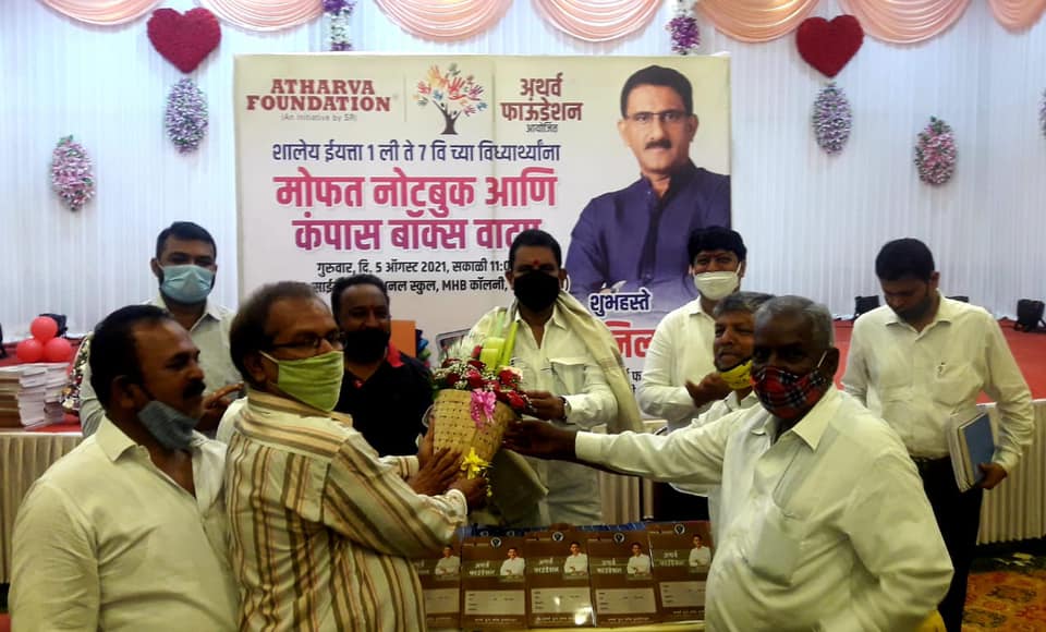 Organised a Notebook and Compass Box Distributuion Program by 'Atharva Foundation' for school going students of Std 1st to 7th at Sailee International School, M.H.B. Colony Borivali (W). Former Corporator Mr. Shiva Shetty, Padadhikaris and Karyakartas