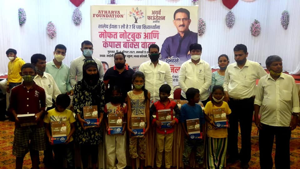 Organised a Notebook and Compass Box Distributuion Program by 'Atharva Foundation' for school going students of Std 1st to 7th at Sailee International School, M.H.B. Colony Borivali (W).
