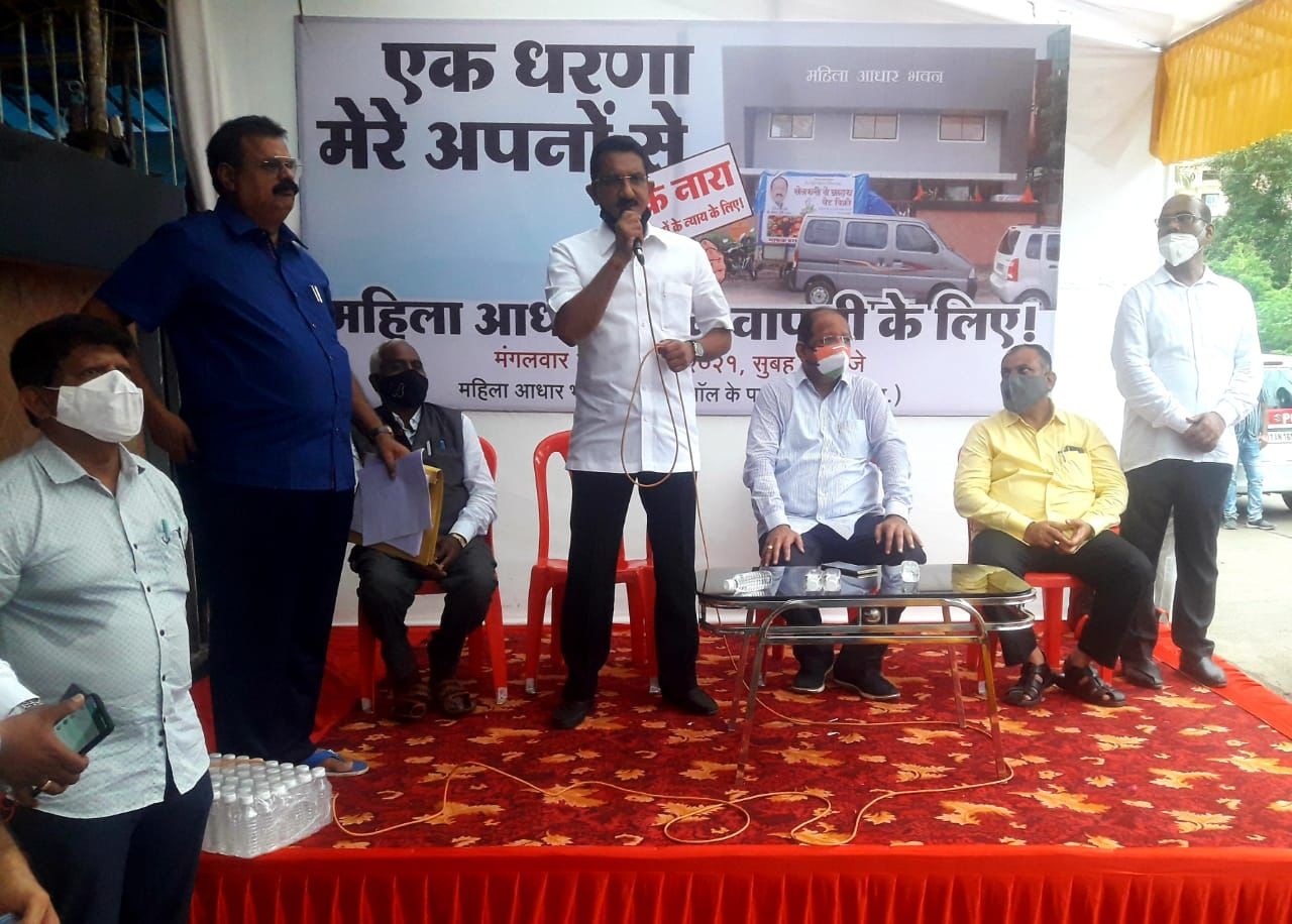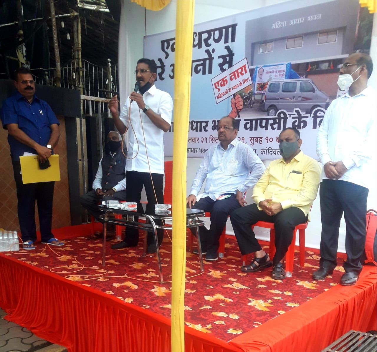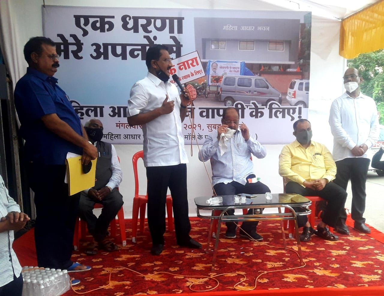 Organised a staged Agitation at Raghuleela Mall, Kandivali(W) to demand the resumption of the Mahila Adhar Bhavan that works for the Social Rights and Justice for Women and their Empowerment. North Mumbai MP Mr. Gopal Shetty, North Mumbai District Preside