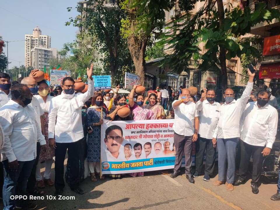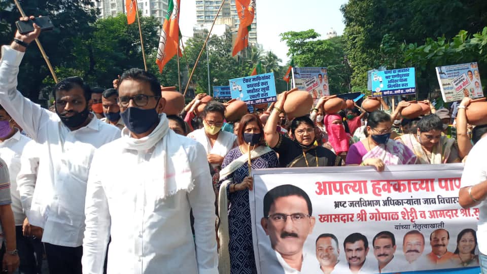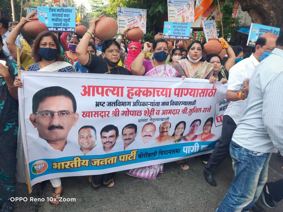 Participated in a protest which was organized today to question the water department officials of Borivali R/Central Municipal Corporation about the water problems that the citizens are facing wherein the women citizens of Borivali Constituency participated in the protest by carrying water pots on their head.