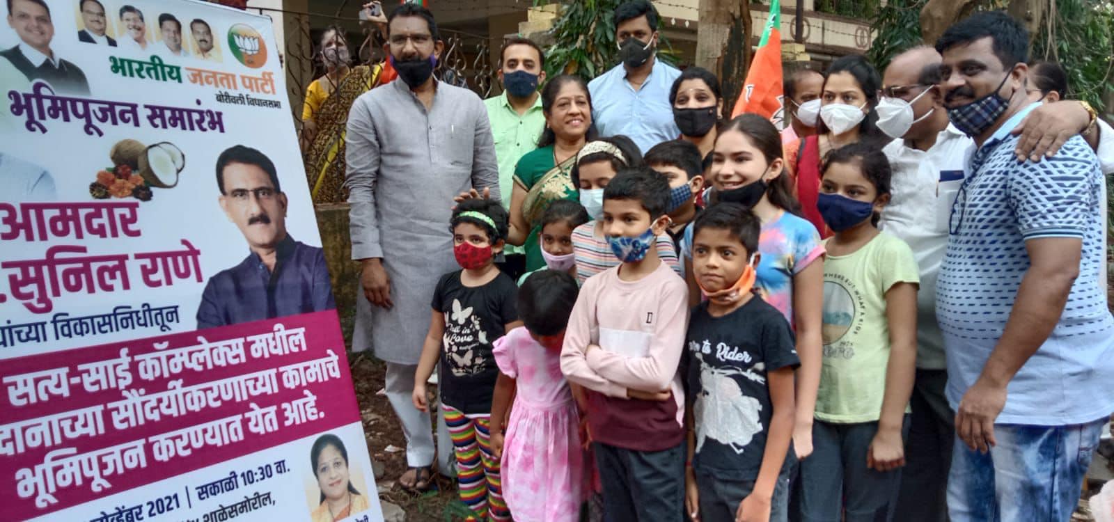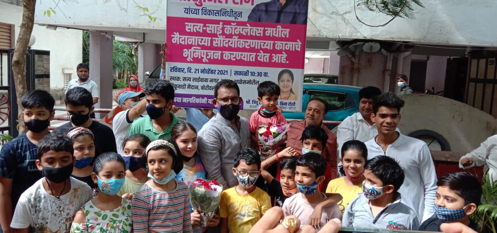 Perfomed Bhumi Pujan for the beautification work of the ground at Satya-Sai Complex, Opp. Witty International School , ward no. 17, Chikuwadi, Borivali(W) being carried out using MLA Development fund. Corporator Mrs. Bina Doshi , BJP Padadhikaris and Kary