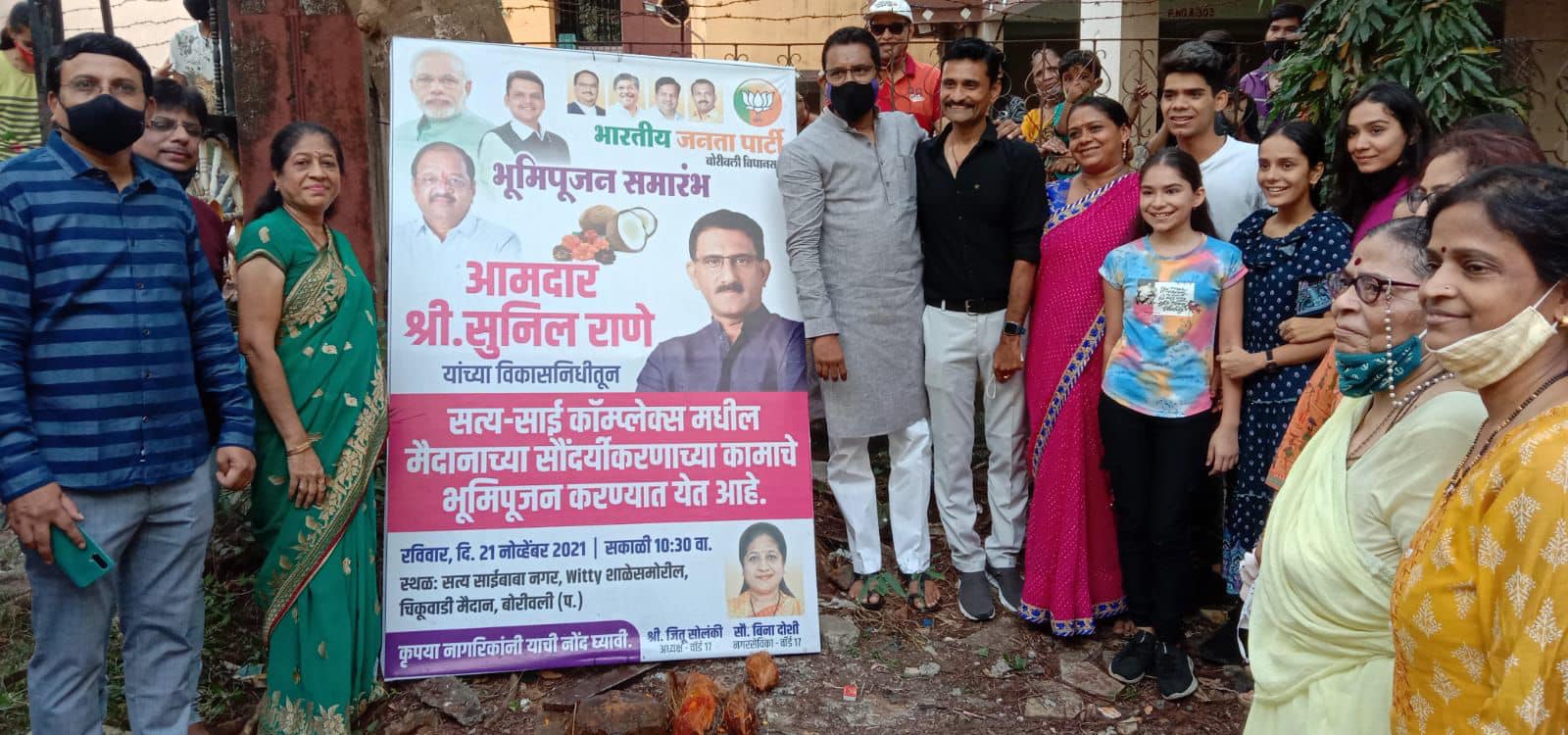 Perfomed Bhumi Pujan for the beautification work of the ground at Satya-Sai Complex, Opp. Witty International School , ward no. 17, Chikuwadi, Borivali(W) being carried out using MLA Development fund.