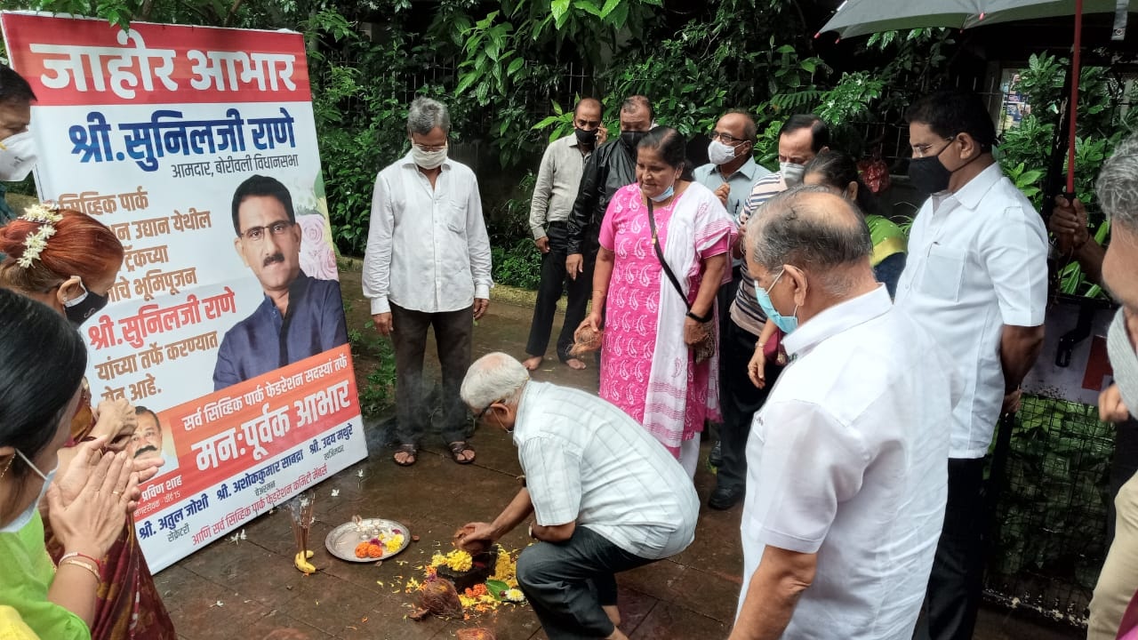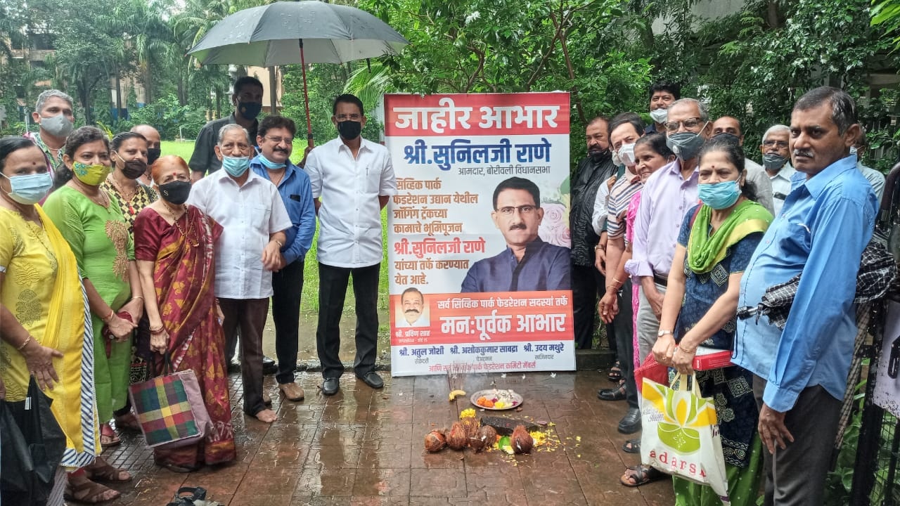 Performed Bhumi Pujan in the morning of Jogging Track to be constructed utilizing MLA Development Fund at Civic Park Federation, Kastur Park, Shimpoli Road, Ward No.15, Borivali (W).