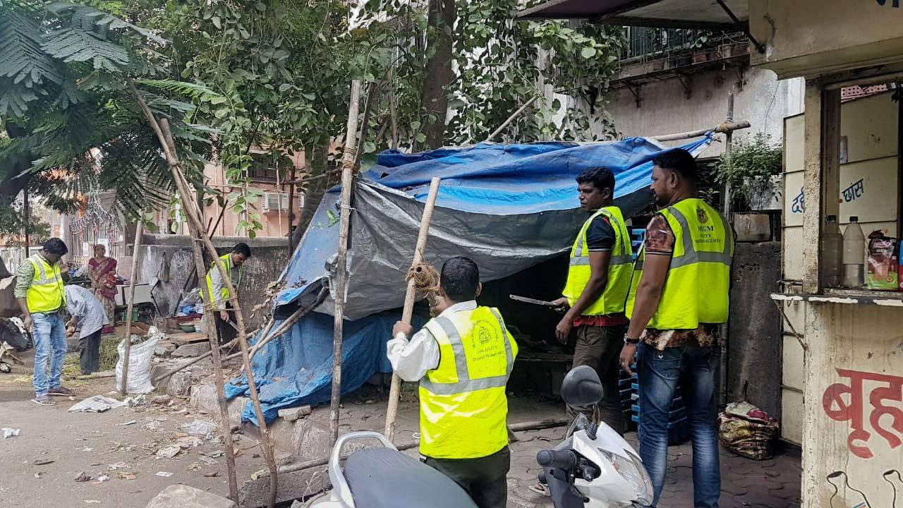 Shri. Sunil Rane as instructed, the illegal settlements and encroachments on the footpaths were taken down by the MCGM at the Link Road Fire Brigade, RM Bhattad Marg, Saibaba Nagar Junction and Malharrao Kulkarni Road in Borivali.