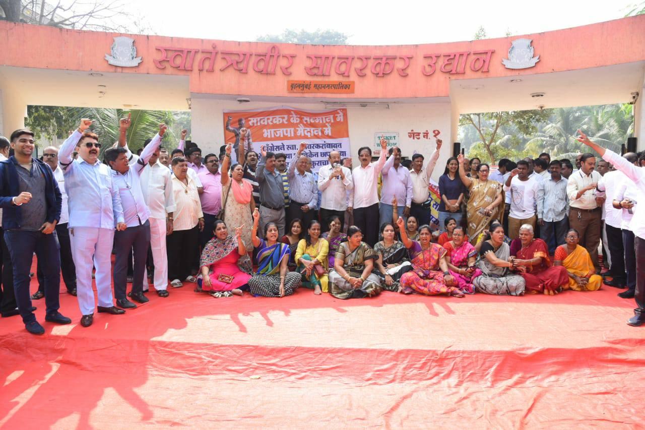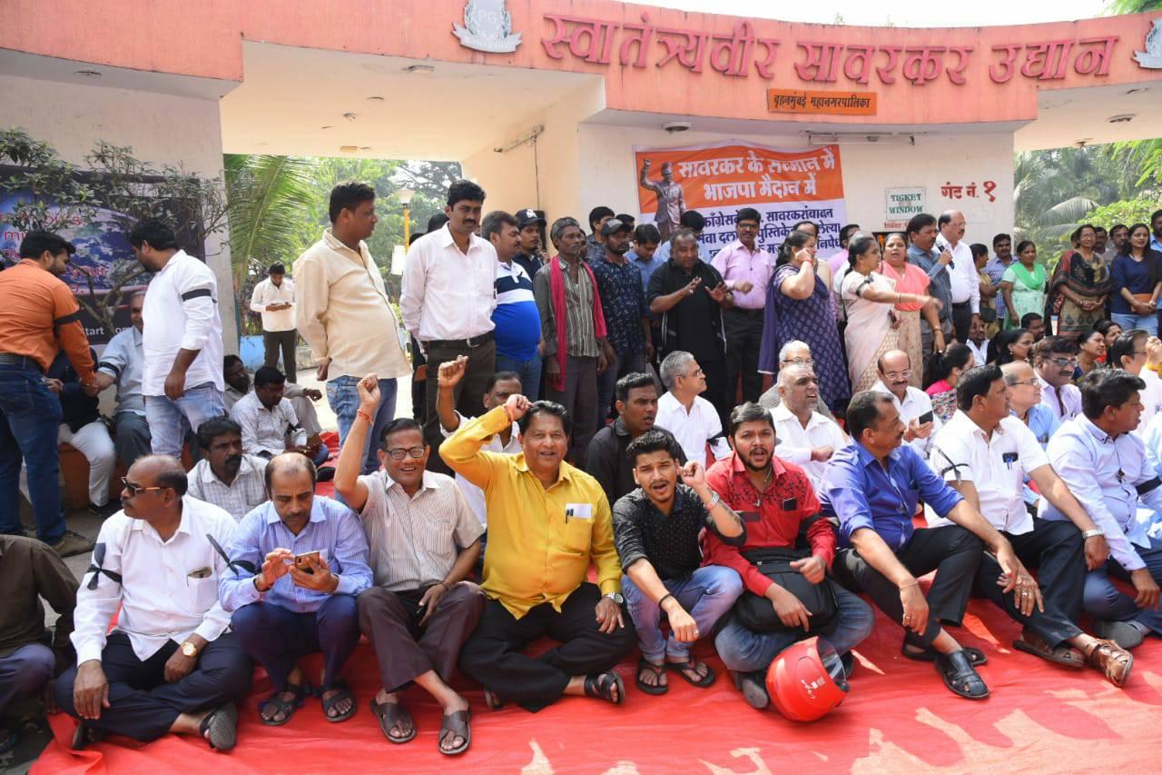 Shri. Sunil Rane attended A protest was organized at Veer Savarkar Udhyan, Borivali West today against a Row Over Booklet printed by Congress Seva Dal against Hon' Late Shri Swatantrya Veer Savarkar Ji.