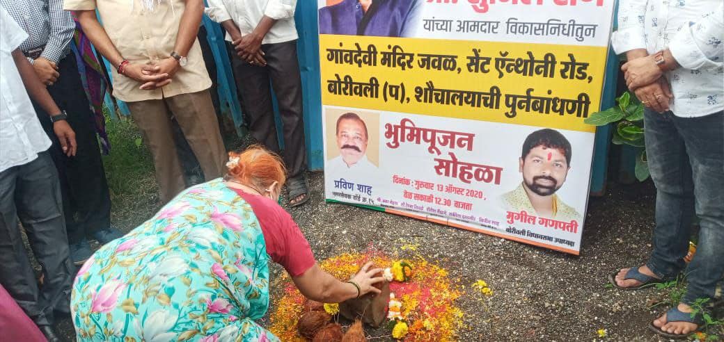 Shri Sunil Rane attended the Bhumi Pujan ceremonies of the renovation project of public restrooms in Ward no.13, carter road, melody mata temple in Borivali East, Ward no.15 Gaondevi temple at St.Anthony road, Kandivali West, and Ward no.16 of Shivaji Nagar, Shimpoli Road, Borivali West , in addition to the work of setting up a Study point and repair work of a Newspaper reading stand behind Dattapada, Suswagatam Hotel in Ward no.14 using the MLA development fund.