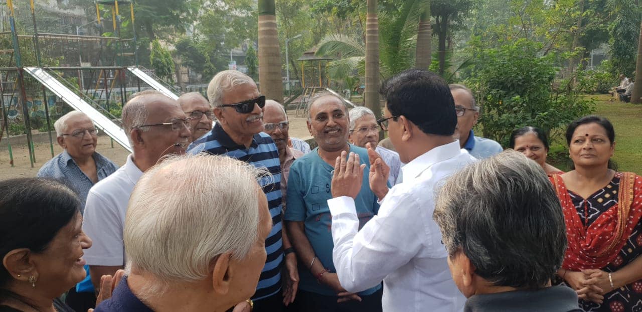 Shri. Sunil Rane morning visit to the senior citizens laughing club of Pandit Nehru Garden, Saibaba Nagar, Borivali West.