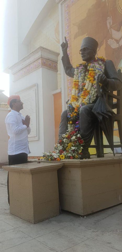 Shri Sunil Rane on the event of Hon' Swatantrya Veer Savarkar's death anniversary, paid respects to his statue at Shivaji Park, Dadar and visited a library nearby to read some books based on his life.
