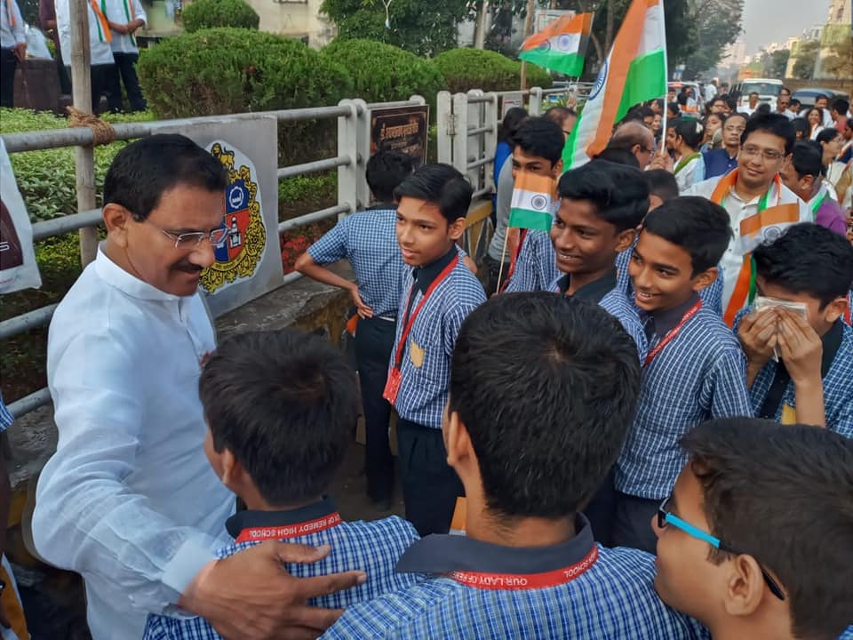 Shri. Sunil Rane on the occasion of the 71st Republic Day, hoisted the flag at Shyamaprasad Mukherjee Chowk, Kora Kendra, Borivali along with MP Shri Gopal Shetty Ji and the students of Our Lady of Remedy High School.