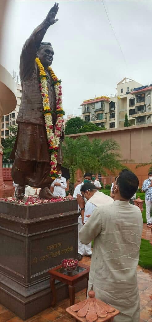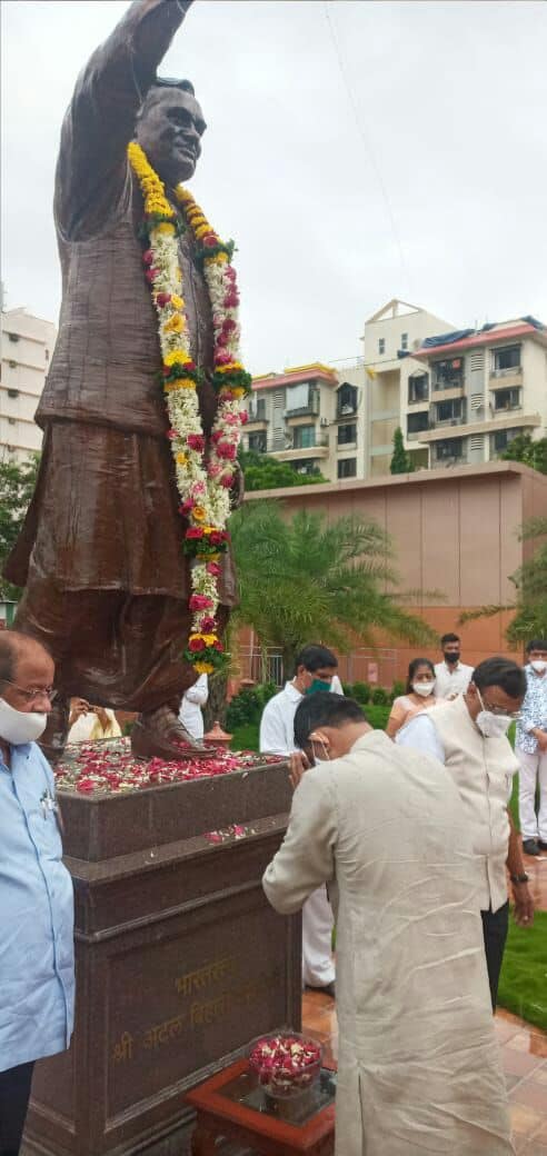 Shri Sunil Rane paid my respects to Bharat Ratna awardee Hon. Shri. Atal Bihari Vajpayee on his Memorial day today, along with MP Shri.Gopal Shetty at Atal Smruti Udyan in Borivali.