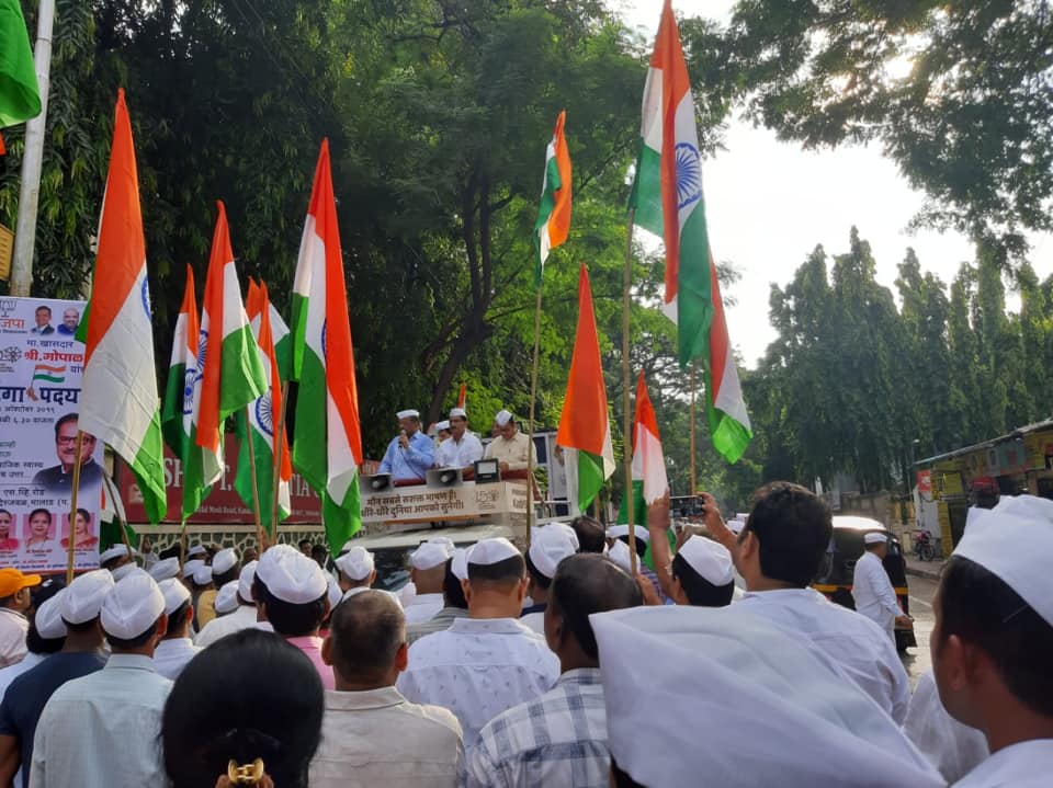 Shri. Sunil Rane Participated In Tiranga Padh Yatra On the Birth Anniversary of Sardar Vallabhbhai Patel & Celebrating 150 years of Mahatma Gandhi ji , the rally ended after offering flowers on the feet of Sardar Patel ji statue today near Kandivali Recreation Club.