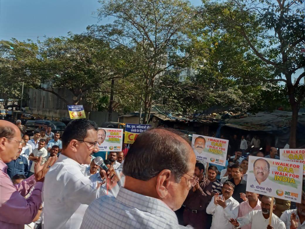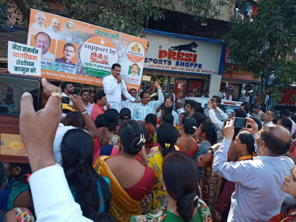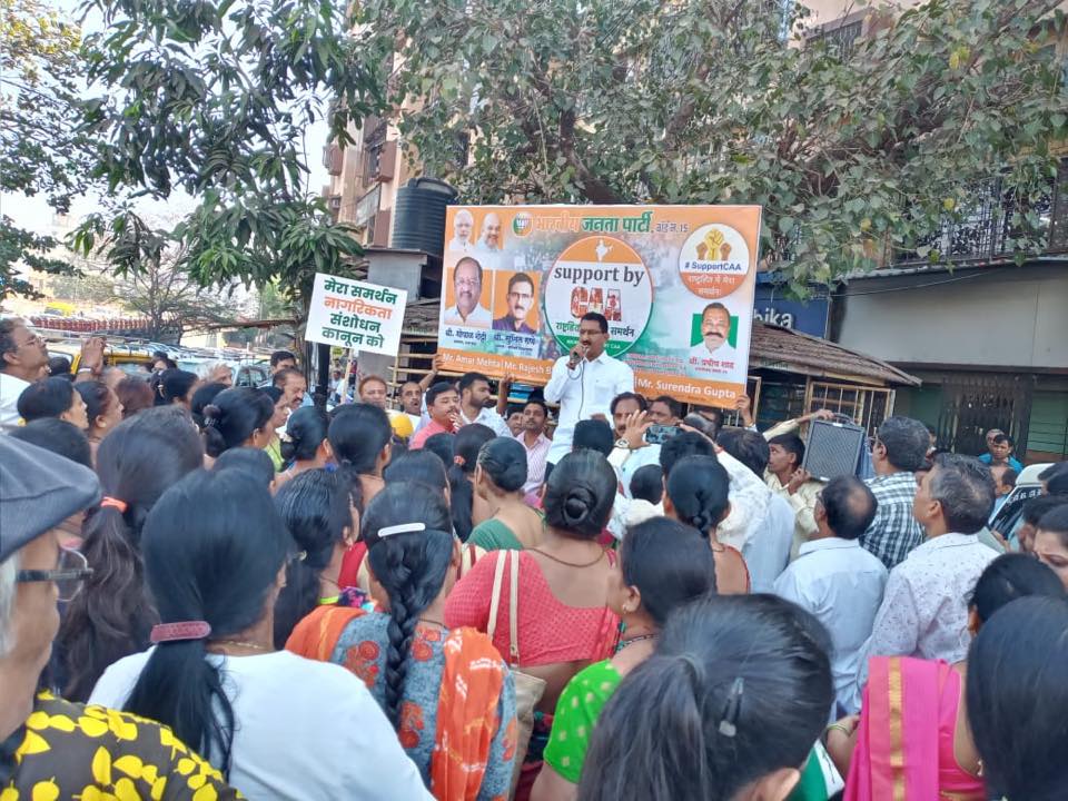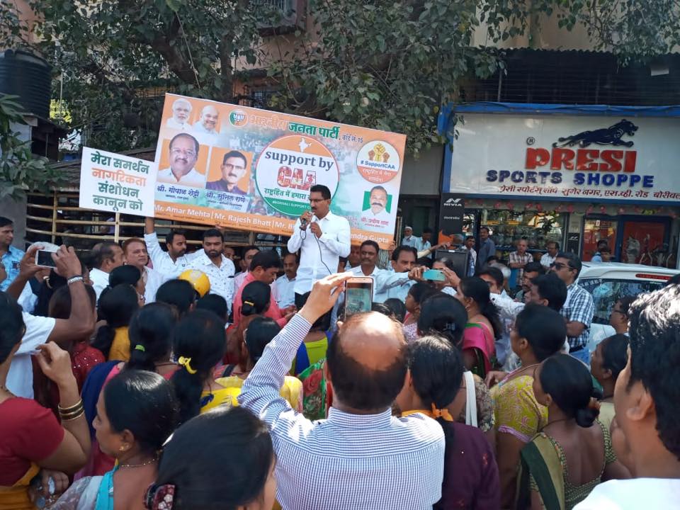 Shri. Sunil Rane spoke to the residents of Ward 15 about CAA at a Peaceful rally organized in the support of the CAA to show solidarity with the government at TPS Jain Temple, Satra Park Society located in Borivali Vidhansabha with MP Shri Gopal Shetty Ji.