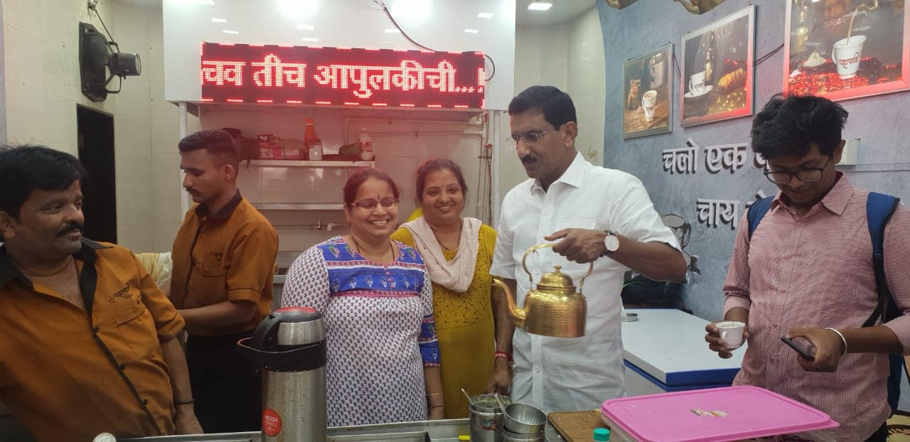 Shri. Sunil Rane visited at a cafe run by the mother of an alumni of an MBA student at Atharva College with party officials at a Cafe after M.N.P and Police meeting. I am proud of such entrepreneurs! They also met with the traders nearby and discussed with them. .