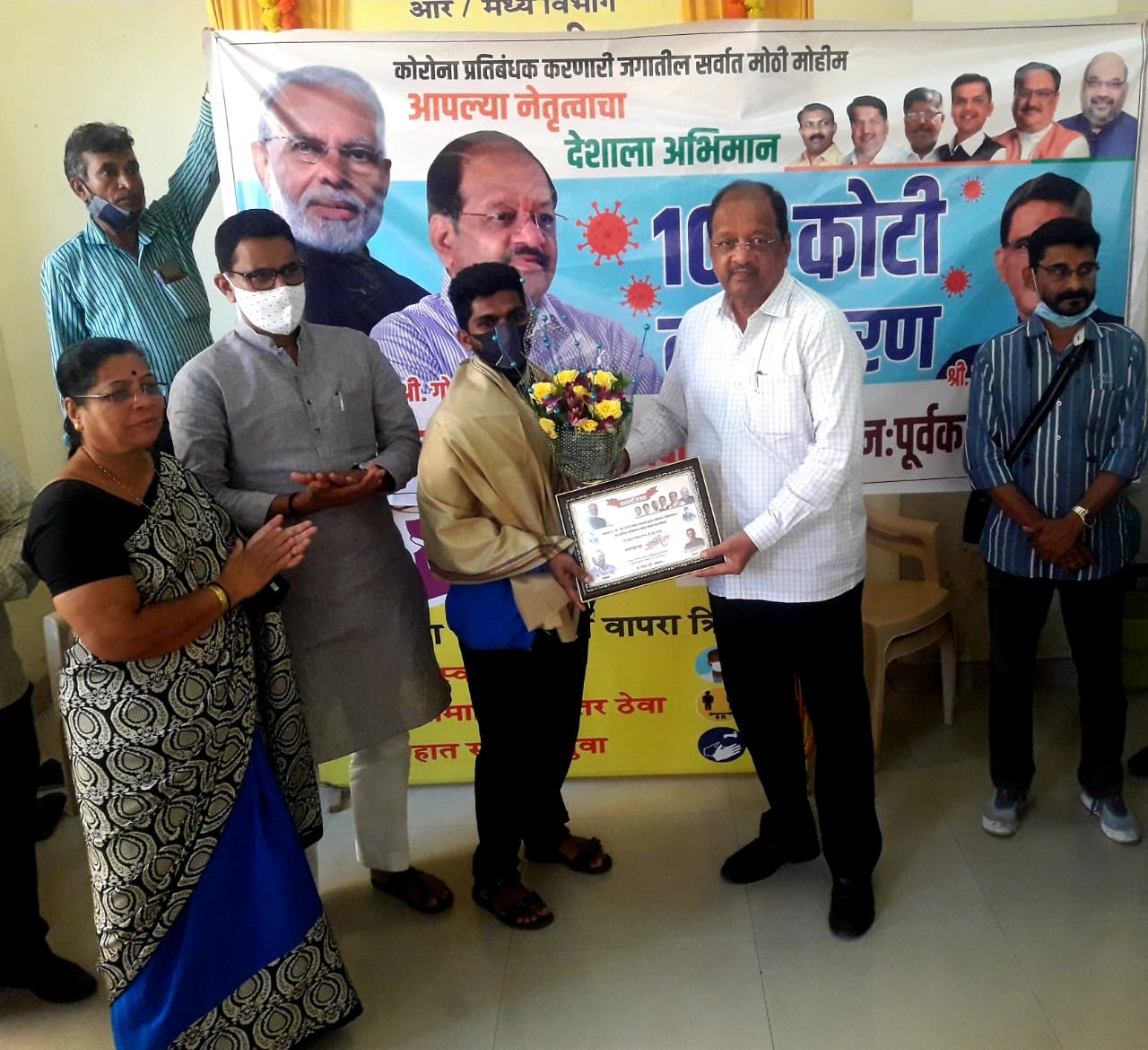 The Bharatiya Janata Party, Borivali Legislative Assembly today honored Covid Worriers in Ward No. 14, Borivali (E) for their contribution in achieving 100 crore vaccination target of Honorable Prime Minister of India Shri.Narendra Modi.