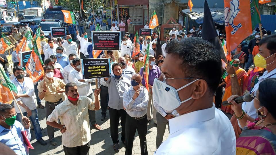 The Bhartiya Janata Party in Borivali West staged a protest against the hike in electricity bills, today. A large number of citizens and Karyakartas showed their presence and registered their strong protest.