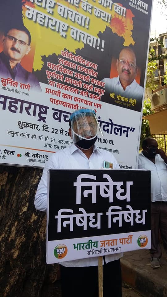 Today, participated in the 'Maharashtra Bachao' agitation along with MP Shri Gopal Shetty ji, BJP Borivali President Shri Amar Mehta, post holders and corporators from the constituency at BJP Borivali Office.