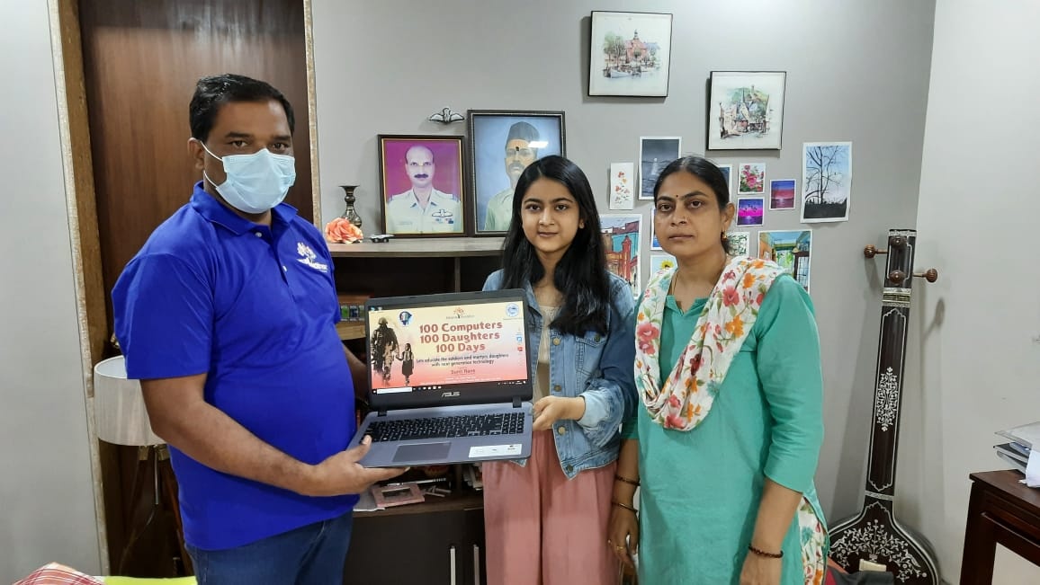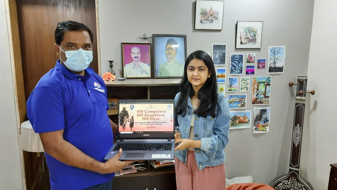 In this regard, today laptops were donated to Ms Umang Gosawai daughter of Late Major Kunal Munnagir Gosawi(SC) in Pandharpur and Ms Mrunmayee Shrikant Vaidya daughter of Late Sqn. Shrikant Vaidya from Pune.
