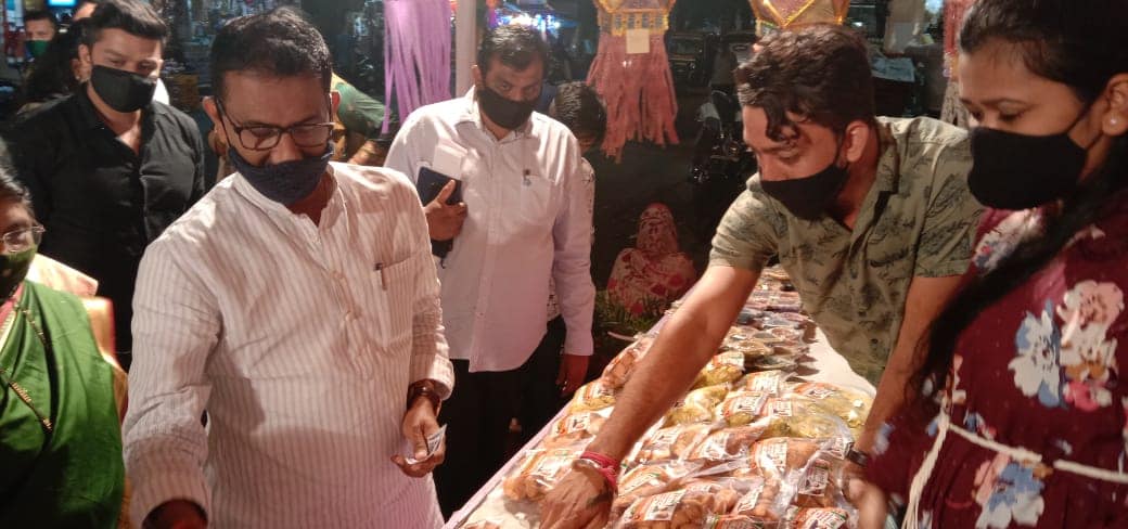 Under the initiative of Aatmnirbhar Bharat and Women Empowerment, Jai Durge Mahila Bachat Gat has organized a Diwali Faral Stall at ward no.16 wherein they will be providing Faral at a low prices to the citizens, visited this stall and wished them all the best.