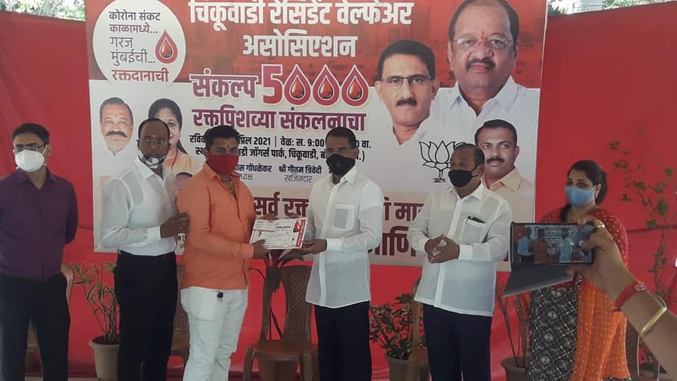 Visited blood donation camps organised by Chikoowadi Resident Welfare Association, Bunts Sangha Mumbai and Apna Fal Bazar Trust and encouraged the blood donors present.
