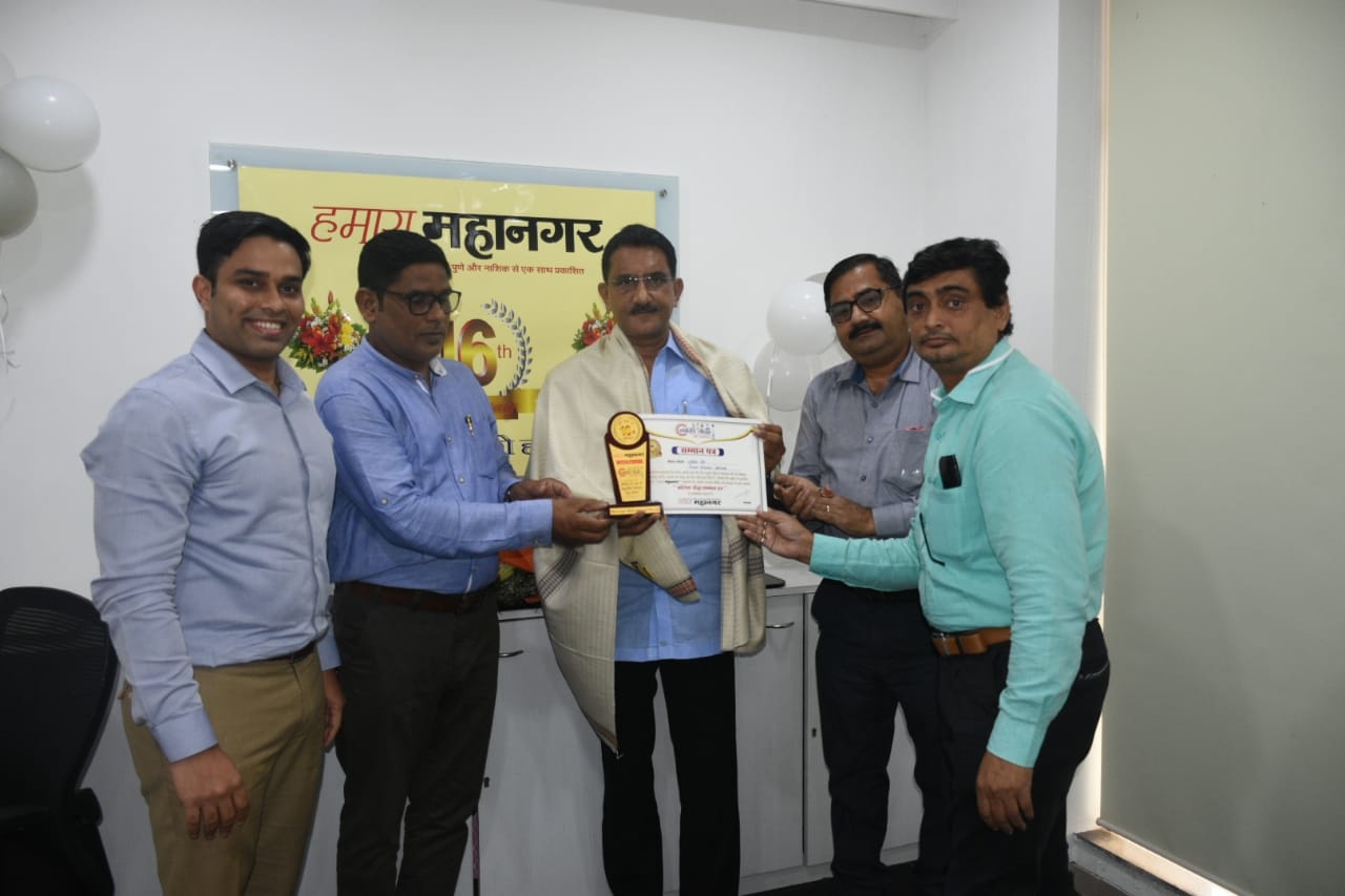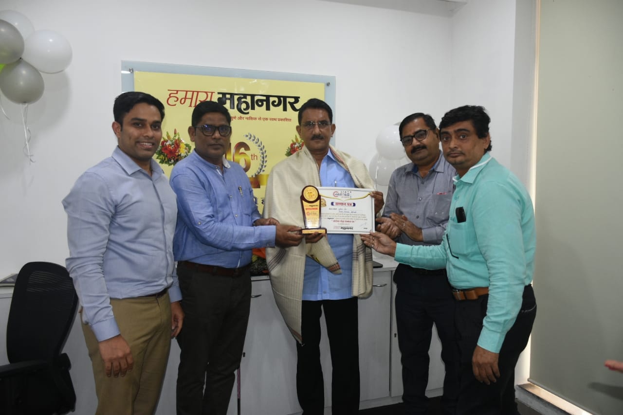 Visited the office of Hamara Mahanagar at Powai on the occasion of their 16th anniversary.The Hamara Mahanagar team recognized my work done during the Covid-19 pandemic and was felicitated as a ‘Covid Yoddha’. Humara Mahanagar Editor Mr. Antesh Singh, Executive Editor Mr. Raghvendranath Dwivedi and Mumbai City Editor Mr. Udayraj Yadav were also present!