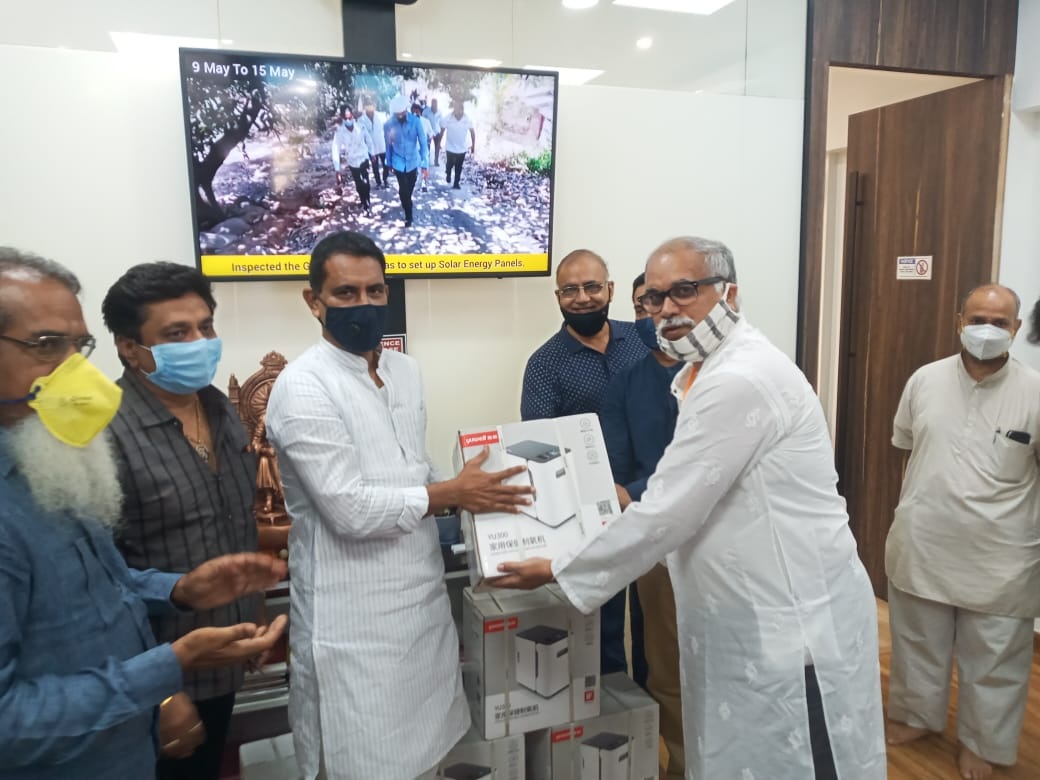 With an intention to help the patients under the grasp of corona and to overcome the shortage of oxygen caused due to Covid- 19; Oxygen Concentrator Machines were distributed to the RSS Sangh with the support received from Mr. Nitin Sunderji who shared the common vision to serve the society in this deadly pandemic !