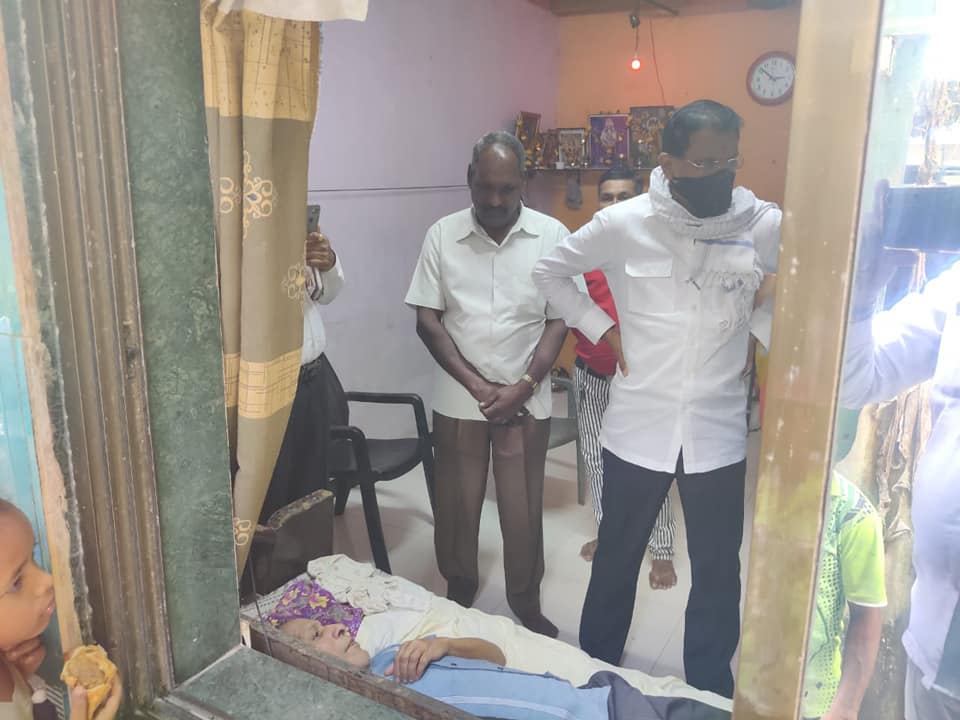 A resident of Manori village named Mr. Yashwant Koli, got a paralysis attack and was taken to the hospital by the ambulance donated by Atharva Foundation. Visited Mrs. Subhadra Yashwant Koli's residence and inquired about Mr. Yashwant Koli's health.