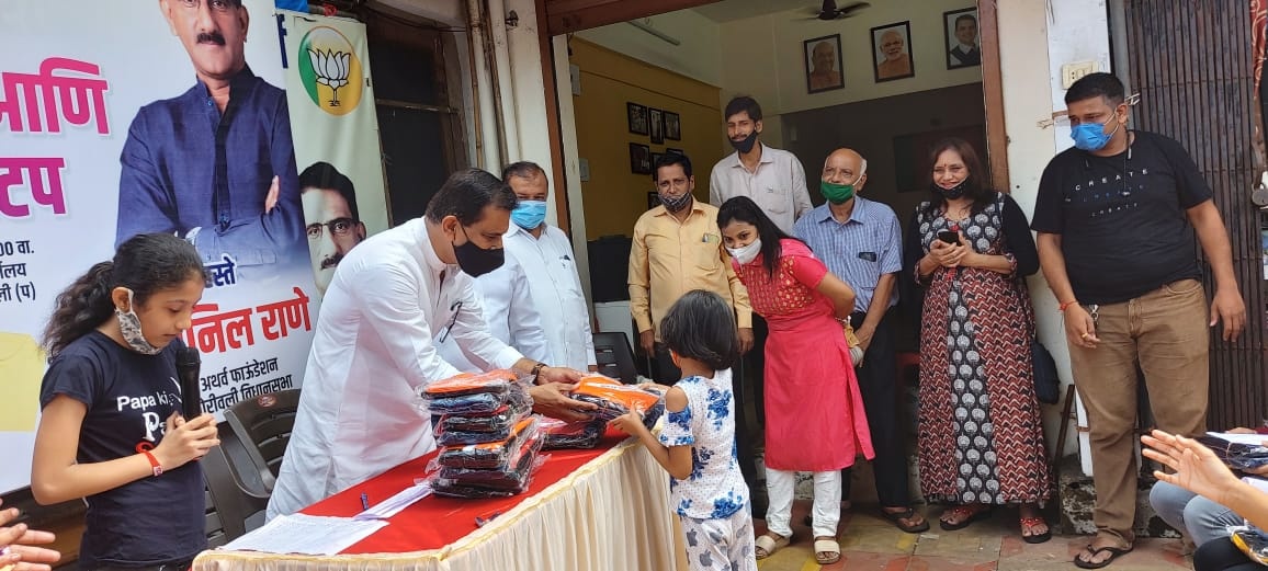 "Atharva Foundation" organised a 'Free Jeans and Tshirt Distribution' program for the school going young kids' at Public Relations Office, Ward No.9, Pragati Naka, Gorai-02, Borivali(W)