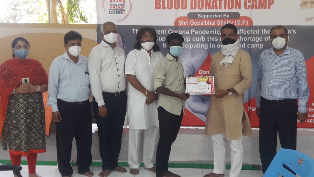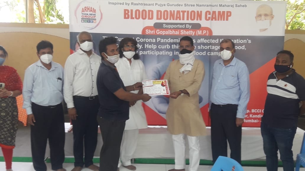 Attended the Blood Donation Camp at Mahavir Nagar, Kandivali (W), organised by Arham Yuva Seva Group and supported by MP Gopal Shetty in an attempt to curb the huge shortage of blood caused due to the sudden rise in corona cases !