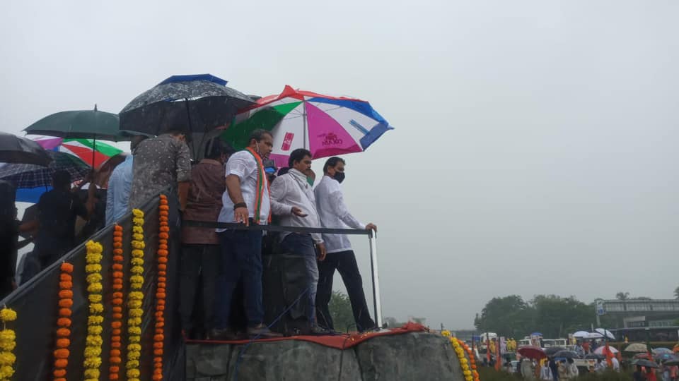 Hon'ble Union Minister of Micro, Small and Medium Enterprises Shri. Narayanrao Rane's "Jana Ashirwad" Yatra was inaugurated by laying a wreath at the statue of Chhatrapati Shivaji Maharaj at Sahara International Airport. Former Chief Minister of Maharasht