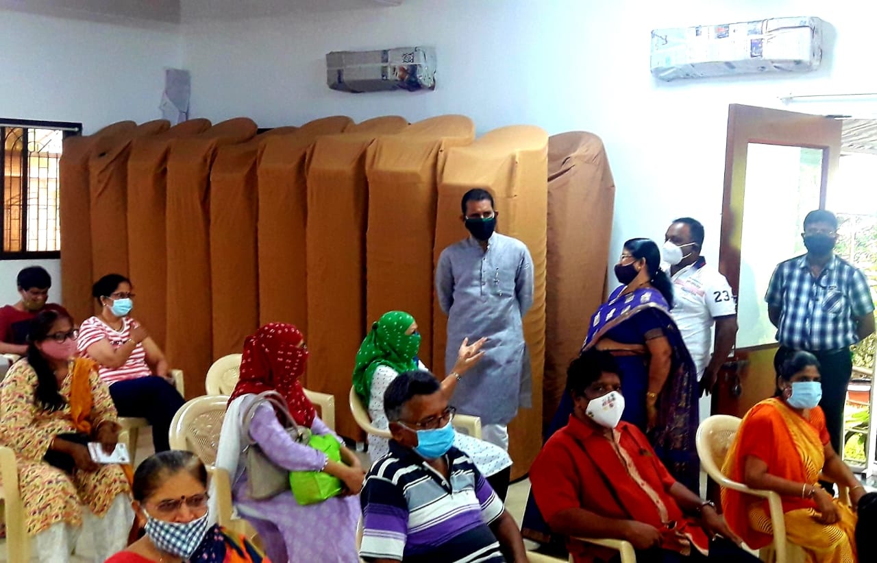 Inspected the work of Covid-19 Vaccination Centre by Mumbai Municipal Corporation R / Central Division at Shanti Dham, Prarthanalaya Kastur Park, Shimpoli, Ward no 16, Borivali (W); and learned about the problems of the citizens present for vaccination.