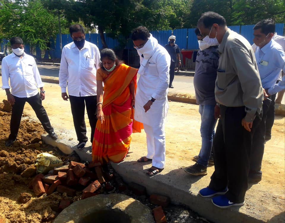 Inspected the work of the Sewers outside Kora Kendra Ground 2 , Ward no 17, Borivali (W). Corporator Mrs. Bina Doshi, BJP's Post Holders and Karyakartas were also present during the inspection.