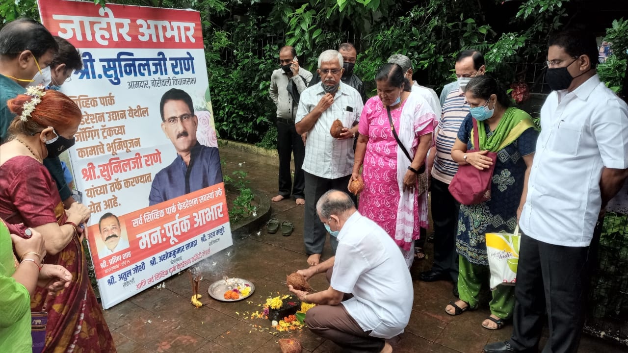 Performed Bhumi Pujan in the morning of Jogging Track to be constructed utilizing MLA Development Fund at Civic Park Federation, Kastur Park, Shimpoli Road, Ward No.15, Borivali (W).
