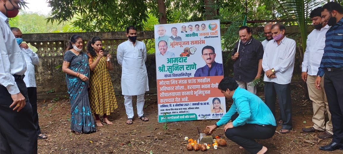 Performed Bhumi Pujan of the Public Lavatory to be made using MLA Development Fund at Ward No. 17, Near Morya Mitra Mandal Ground, Aavishkar Society, Haryana Bhavan,
