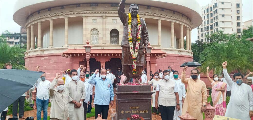 Shri Sunil Rane paid my respects to Bharat Ratna awardee Hon. Shri. Atal Bihari Vajpayee on his Memorial day today, along with MP Shri.Gopal Shetty at Atal Smruti Udyan in Borivali.